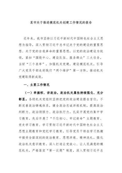 / 【七哥公文】2024年:某市关于推进模范机关创建工作情况的报告+更多免费公文+VX:QiGeGongWen2024