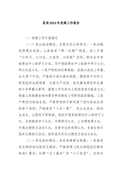 / 【七哥公文】2024年:某局2024年党建工作报告+更多免费公文+VX:QiGeGongWen2024