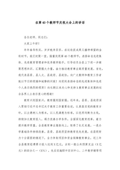 / 【七哥公文】2024年:在第40个教师节庆祝大会上的讲话+更多免费公文+VX:QiGeGongWen2024
