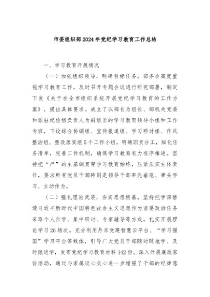 / 【七哥公文】2024年:市委组织部2024年党纪学习教育工作总结+更多免费公文+VX:QiGeGongWen2024