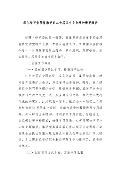 / 【七哥公文】2024年:深入学习宣传贯彻党的二十届三中全会精神情况报告+更多免费公文+VX:QiGeGongWen2024