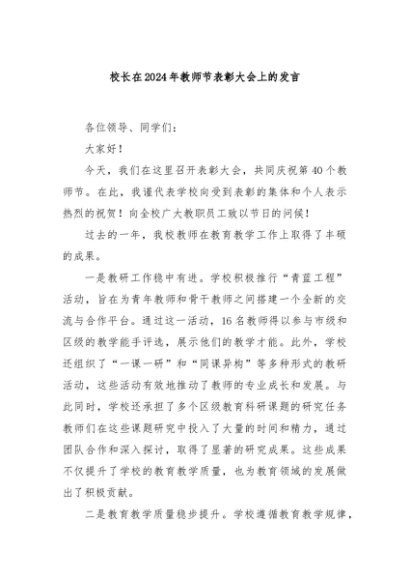 / 【七哥公文】2024年:校长在2024年教师节表彰大会上的发言+更多免费公文+VX:QiGeGongWen2024