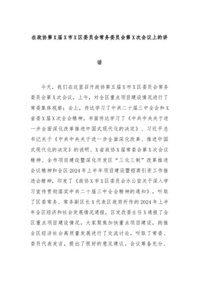 【七哥公文】2024年:在政协第X届X市X区委员会常务委员会第X次会议上的讲话+更多免费公文+VX:QiGeGongWen2024