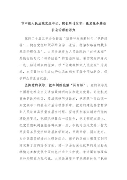 【七哥公文】2024年:市中级人民法院党组书记、院长研讨发言:激发服务基层社会治理新活力+更多免费公文+VX:QiGeGongWen2024