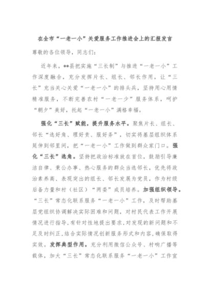 / 【七哥公文】2024年:在全市“一老一小”关爱服务工作推进会上的汇报发言+更多免费公文+VX:QiGeGongWen2024