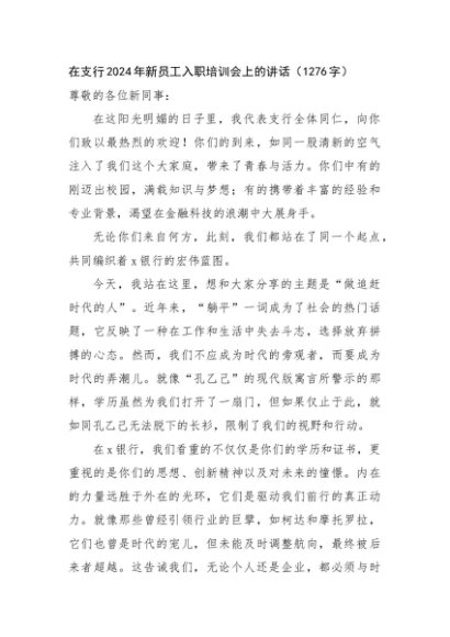 【七哥公文】2024年:国企支行2024年新员工入职培训会上的讲话(1276字)+更多免费公文+VX:QiGeGongWen2024