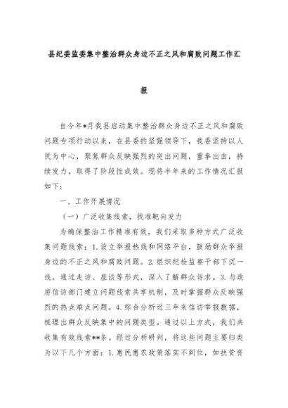 【七哥公文】2024年:县纪委监委集中整治群众身边不正之风和腐败问题工作汇报+更多免费公文+VX:QiGeGongWen2024