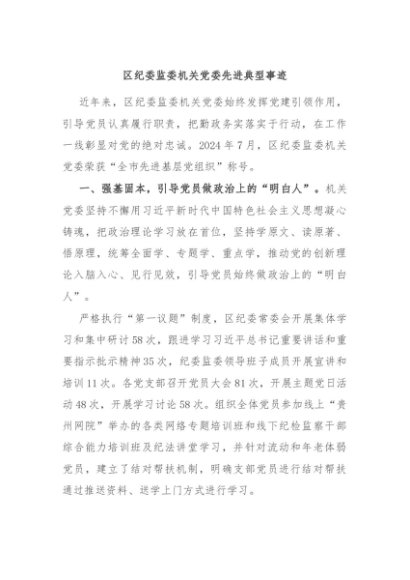 / 【七哥公文】2024年:区纪委监委机关党委先进典型事迹+更多免费公文+VX:QiGeGongWen2024