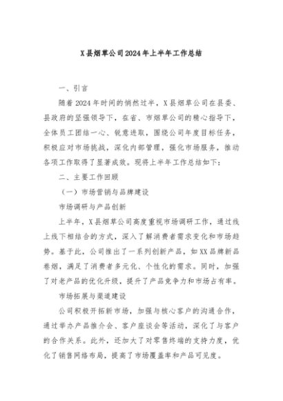 / 【七哥公文】2024年:县烟草公司2024年上半年工作总结+更多免费公文+VX:QiGeGongWen2024