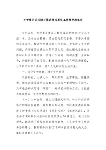 / 【七哥公文】2024年:关于整治歪风陋习推进移风易俗工作情况的汇报+更多免费公文+VX:QiGeGongWen2024