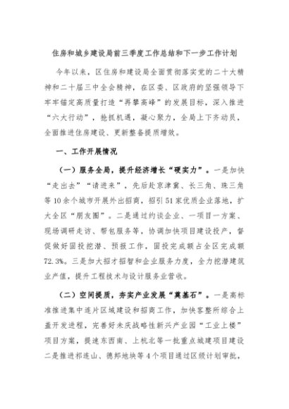 / 【七哥公文】2024年:住房和城乡建设局前三季度工作总结和下一步工作计划+更多免费公文+VX:QiGeGongWen2024