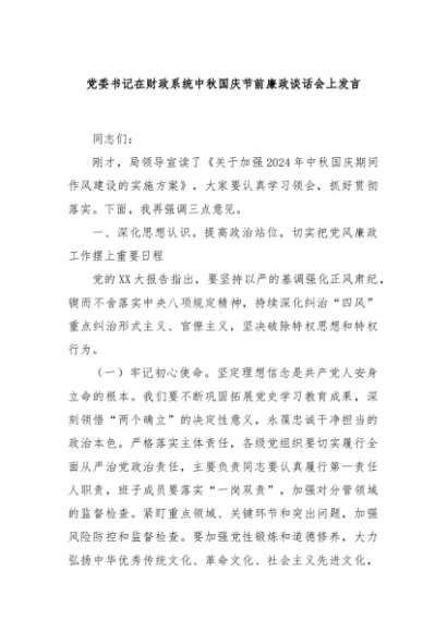 / 【七哥公文】2024年:党委书记在财政系统中秋国庆节前廉政谈话会上发言+更多免费公文+VX:QiGeGongWen2024