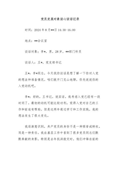 / 【七哥公文】2024年:党员发展对象谈心谈话记录+更多免费公文+VX:QiGeGongWen2024