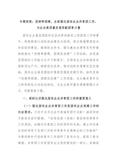 【七哥公文】2024年:专题党课:坚持带团建,全面强化国有企业共青团工作,为企业高质量发展贡献团青力量+更多免费公文+VX:QiGeGongWen2024