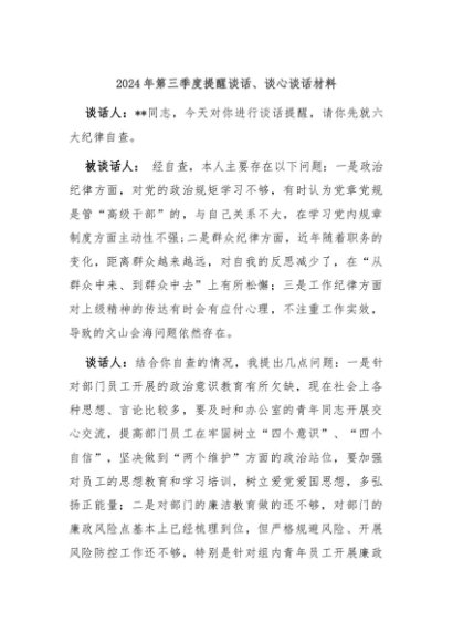 / 【七哥公文】2024年:2024年第三季度提醒谈话、谈心谈话材料+更多免费公文+VX:QiGeGongWen2024