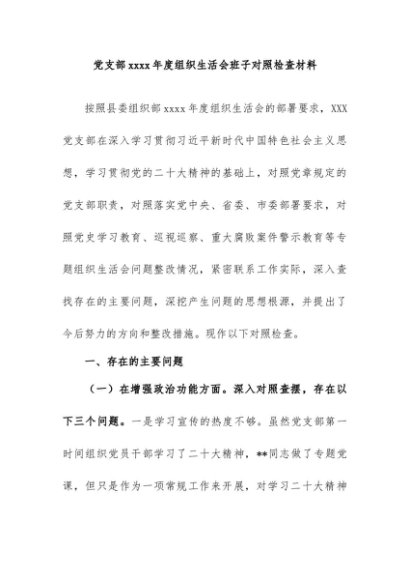 / 【七哥公文】2024年:党支部xxxx年度组织生活会班子对照检查材料+更多免费公文+VX:QiGeGongWen2024