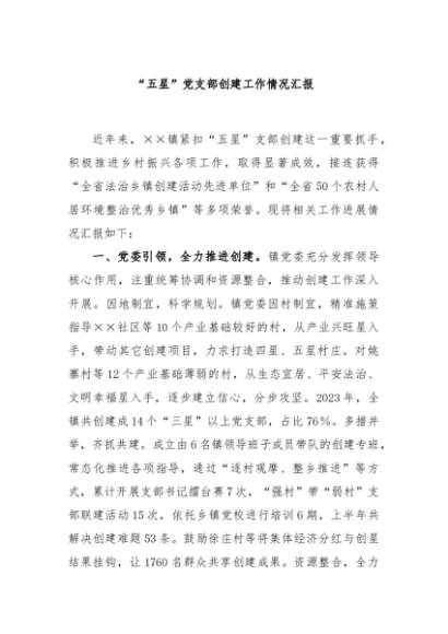 / 【七哥公文】2024年:“五星”党支部创建工作情况汇报+更多免费公文+VX:QiGeGongWen2024