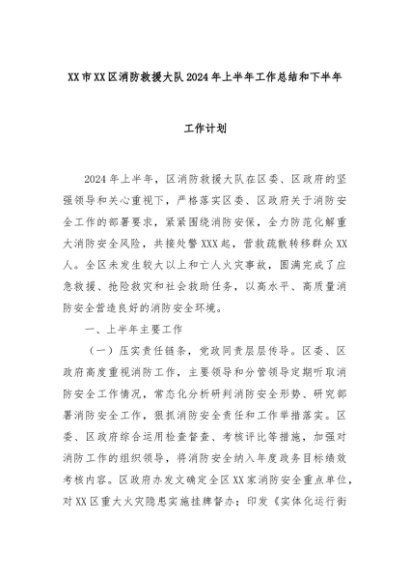 【七哥公文】2024年:XX市XX区消防救援大队2024年上半年工作总结和下半年工作计划+更多免费公文+VX:QiGeGongWen2024