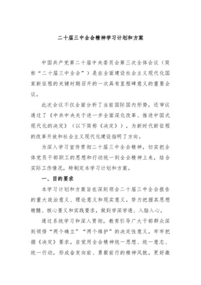 【七哥公文】2024年:二十届三中全会精神学习计划和方案+更多免费公文+VX:QiGeGongWen2024