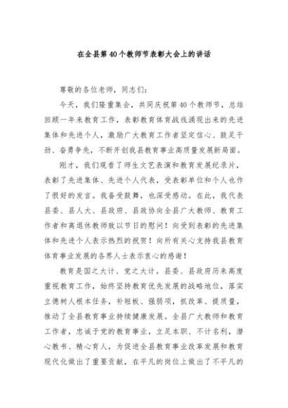 / 【七哥公文】2024年:在全县第40个教师节表彰大会上的讲话+更多免费公文+VX:QiGeGongWen2024