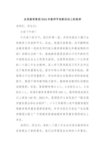 / 【七哥公文】2024年:在某教育集团2024年教师节表彰活动上的致辞+更多免费公文+VX:QiGeGongWen2024