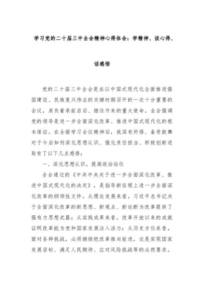 【七哥公文】2024年:学习党的二十届三中全会精神心得体会:学精神、谈心得、话感悟+更多免费公文+VX:QiGeGongWen2024