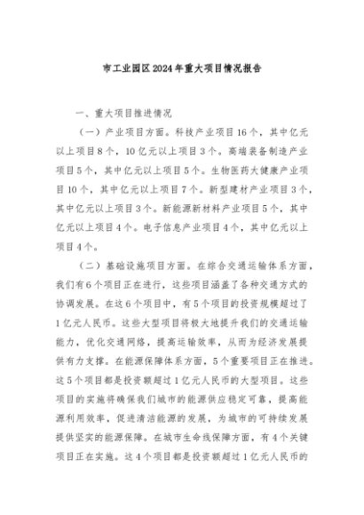 / 【七哥公文】2024年:市工业园区2024年重大项目情况报告+更多免费公文+VX:QiGeGongWen2024