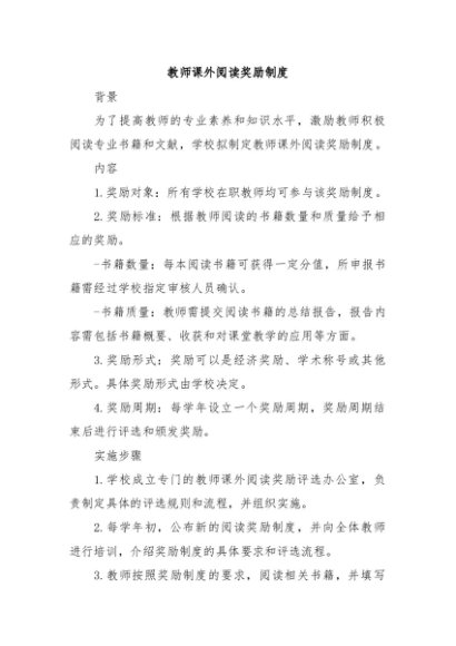【七哥公文】2024年:教师课外阅读奖励制度+更多免费公文+VX:QiGeGongWen2024