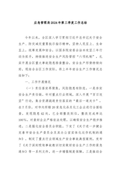 / 【七哥公文】2024年:应急管理局2024年第三季度工作总结+更多免费公文+VX:QiGeGongWen2024