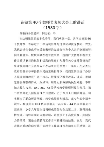 / 【七哥公文】2024年:在镇第40个教师节表彰大会上的讲话1580字+更多免费公文+VX:QiGeGongWen2024