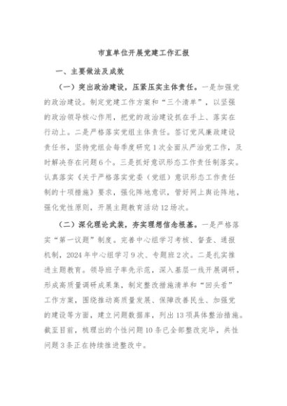 / 【七哥公文】2024年:市直单位开展党建工作汇报+更多免费公文+VX:QiGeGongWen2024