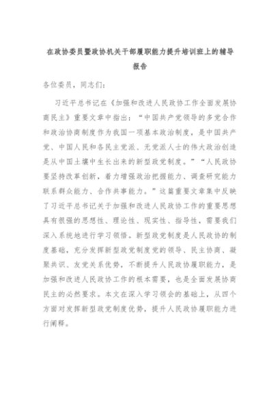 【七哥公文】2024年:在政协委员暨政协机关干部履职能力提升培训班上的辅导报告+更多免费公文+VX:QiGeGongWen2024
