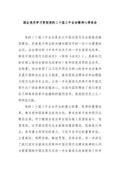 / 【七哥公文】2024年:国企党员学习贯彻党的二十届三中全会精神心得体会+更多免费公文+VX:QiGeGongWen2024