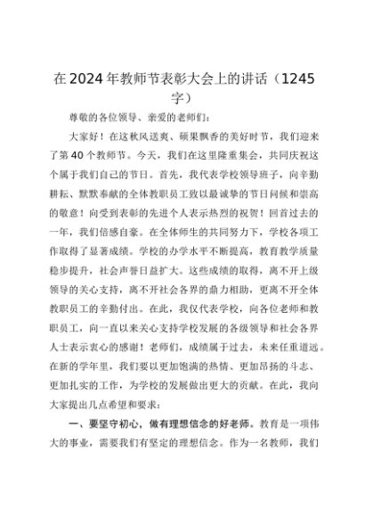 / 【七哥公文】2024年:在2024年教师节表彰大会上的讲话1245字+更多免费公文+VX:QiGeGongWen2024
