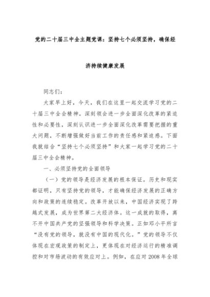 【七哥公文】2024年:党的二十届三中全主题党课:坚持七个必须坚持,确保经济持续健康发展+更多免费公文+VX:QiGeGongWen2024