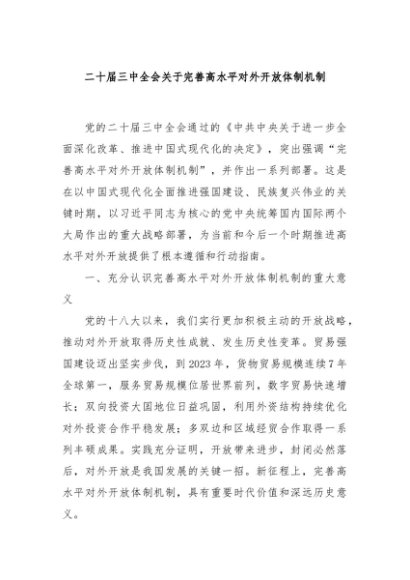/ 【七哥公文】2024年:二十届三中全会关于完善高水平对外开放体制机制+更多免费公文+VX:QiGeGongWen2024