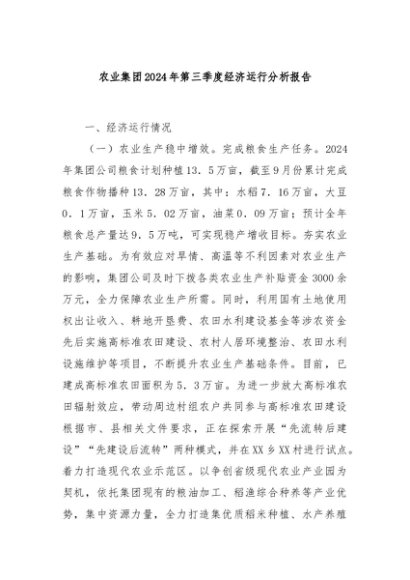 / 【七哥公文】2024年:农业集团2024年第三季度经济运行分析报告+更多免费公文+VX:QiGeGongWen2024