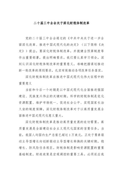 / 【七哥公文】2024年:二十届三中全会关于深化财税体制改革+更多免费公文+VX:QiGeGongWen2024