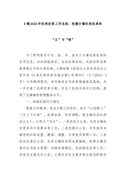 【七哥公文】2024年:X镇2024年机构改革工作总结:把握乡镇机构改革的“立”与“破”+更多免费公文+VX:QiGeGongWen2024