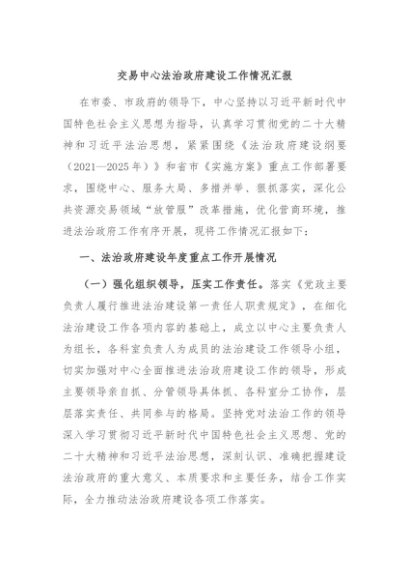 / 【七哥公文】2024年:交易中心法治政府建设工作情况汇报+更多免费公文+VX:QiGeGongWen2024
