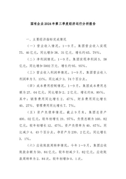 / 【七哥公文】2024年:国有企业2024年第三季度经济运行分析报告+更多免费公文+VX:QiGeGongWen2024