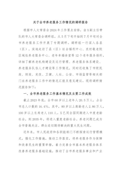 / 【七哥公文】2024年:关于全市养老服务工作情况的调研报告+更多免费公文+VX:QiGeGongWen2024