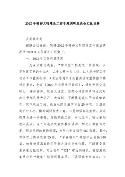 / 【七哥公文】2024年:202X年精神文明建设工作专题调研座谈会汇报材料+更多免费公文+VX:QiGeGongWen2024