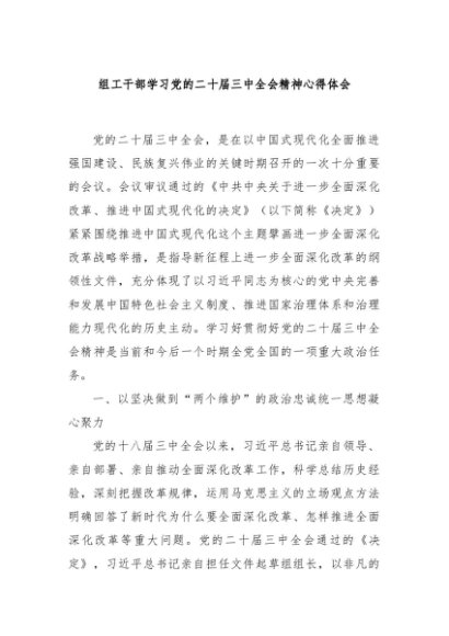 / 【七哥公文】2024年:组工干部学习党的二十届三中全会精神心得体会+更多免费公文+VX:QiGeGongWen2024