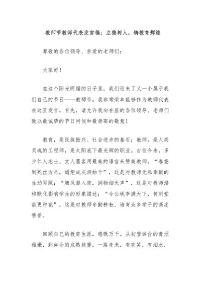 / 【七哥公文】2024年:教师节教师代表发言稿:立德树人,铸教育辉煌+更多免费公文+VX:QiGeGongWen2024