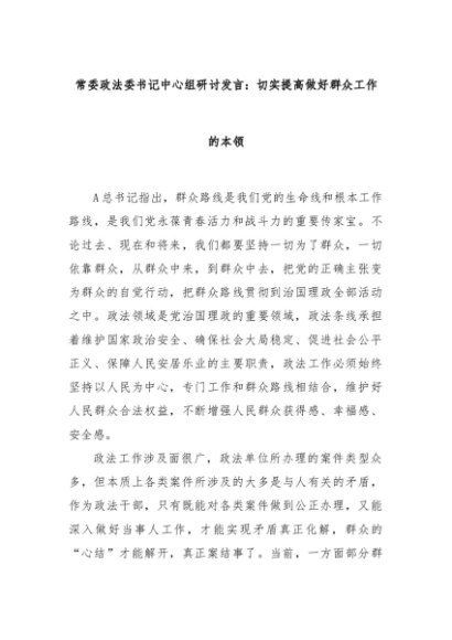 【七哥公文】2024年:常委政法委书记中心组研讨发言:切实提高做好群众工作的本领+更多免费公文+VX:QiGeGongWen2024