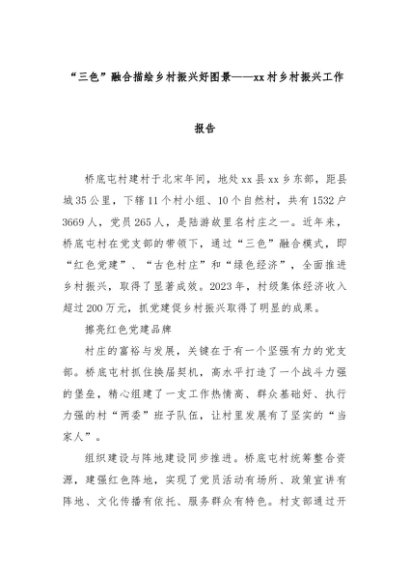 【七哥公文】2024年:“三色”融合描绘乡村振兴好图景——xx村乡村振兴工作报告+更多免费公文+VX:QiGeGongWen2024