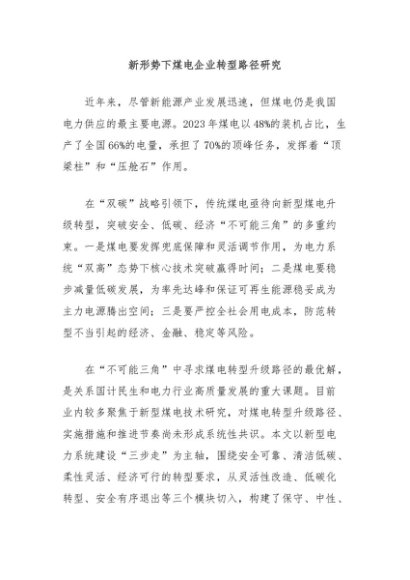 / 【七哥公文】2024年:新形势下煤电企业转型路径研究+更多免费公文+VX:QiGeGongWen2024