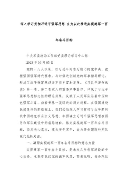 【七哥公文】2024年:深入学习贯彻习近平强军思想 全力以赴推进实现建军一百年奋斗目标+更多免费公文+VX:QiGeGongWen2024