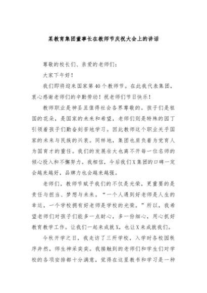 / 【七哥公文】2024年:某教育集团董事长在教师节庆祝大会上的讲话+更多免费公文+VX:QiGeGongWen2024